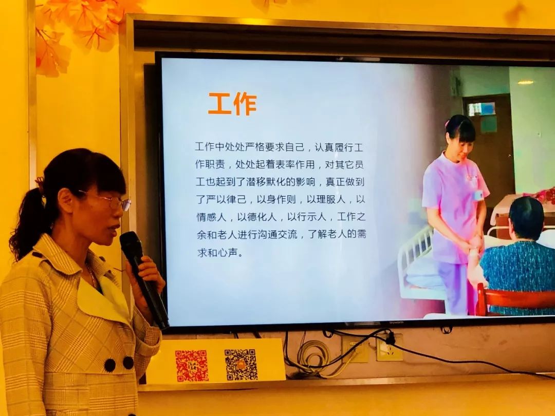 第二天的上午的活動是護理知識競賽,在緊張的氣氛中參賽護理員展示了她們扎實的護理知識;下午的活動,首先是邀請了 2018 年第二屆護理員日活動的最美護理員代表來自復馨養(yǎng)老院的王改枝進行風采展示,她和參賽護理員分享了從業(yè)經(jīng)歷、心路歷程及一路上取得的榮譽和成績,樹立了崗位榜樣,用行動激勵佰仁堂旗下 1300 多位護理員向為老人提供更高質(zhì)量的護理服務目標前進。